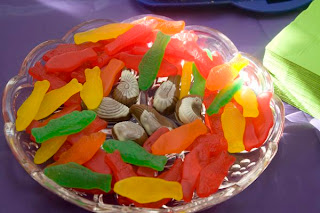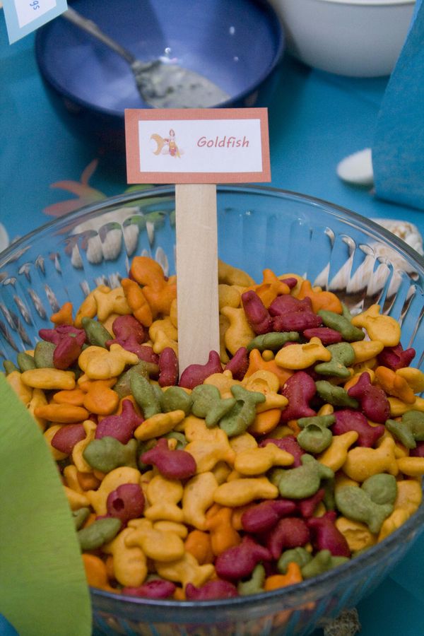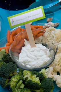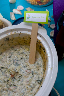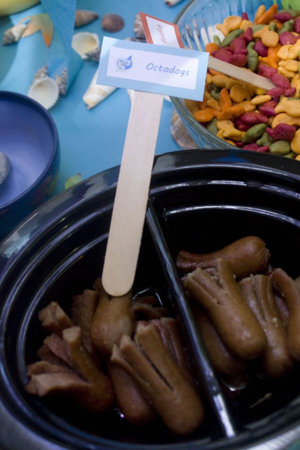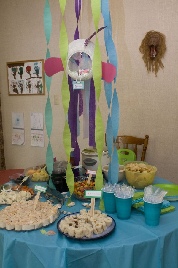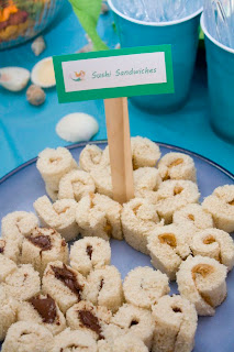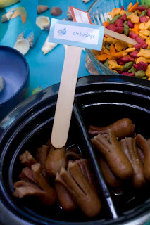 Then there was the food to make. We had sushi sandwiches (peanut butter or nutella rolled in bread), octadogs, spicy seashells (fiesta roll ups), anemones and sea cucumbers (veggies), coral reef (fruit), seaweed dip (spinach and artichoke dip), and of course goldfish.