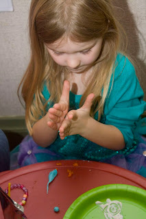 Both girls thought it was fun to use the salt water taffy like clay before eating it.
