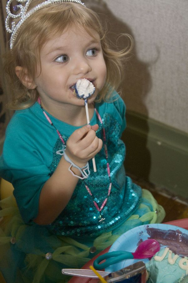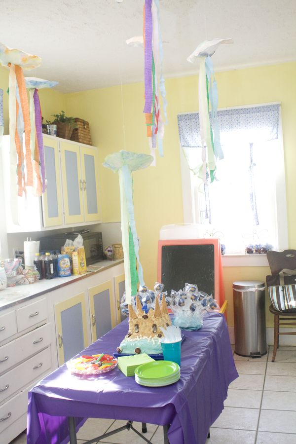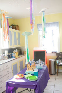 We finally made it to Nadia's birthday party; it seems like she has been waiting on it forever! She was soooo excited about her mermaid party. We started this morning with squidamon rolls. It was a cute idea I saw over at